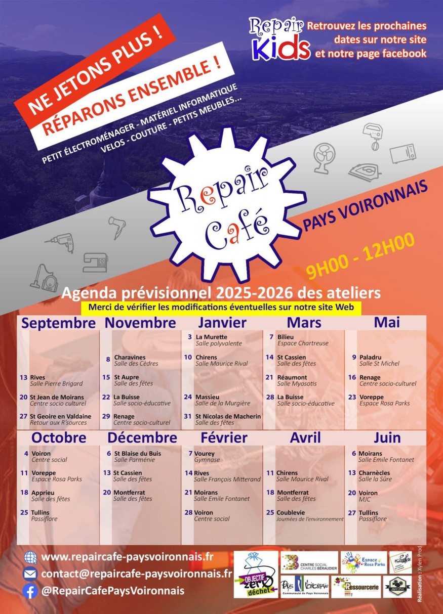 Repair'café : agenda prévisionnel des ateliers 2026